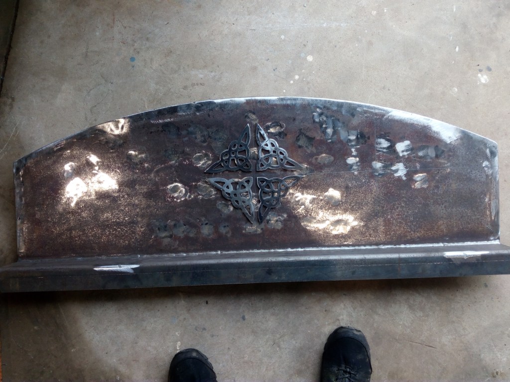 All metal fabrication was carried out by Micky Muldoon of M. Muldoon Metal Fabrications, who skilfully affixed all lettering and designs to the steel plates. Micky also placed the sign onto the gate frame in cooperation with group member, Antán Ó Dála an Rí.