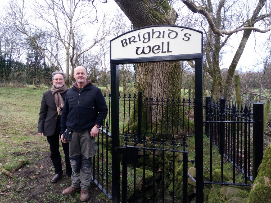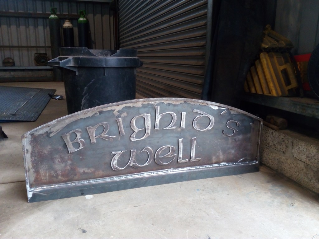 The placing of the name sign takes us one step closer towards completion of the restoration of the holy well. This is an ancient feature that began as a sacred site dedicated to a powerful goddess, before becoming a holy place for a formidable saint, both Irish females of great renown. We hope that it is now worthy of the continuing presence of both.