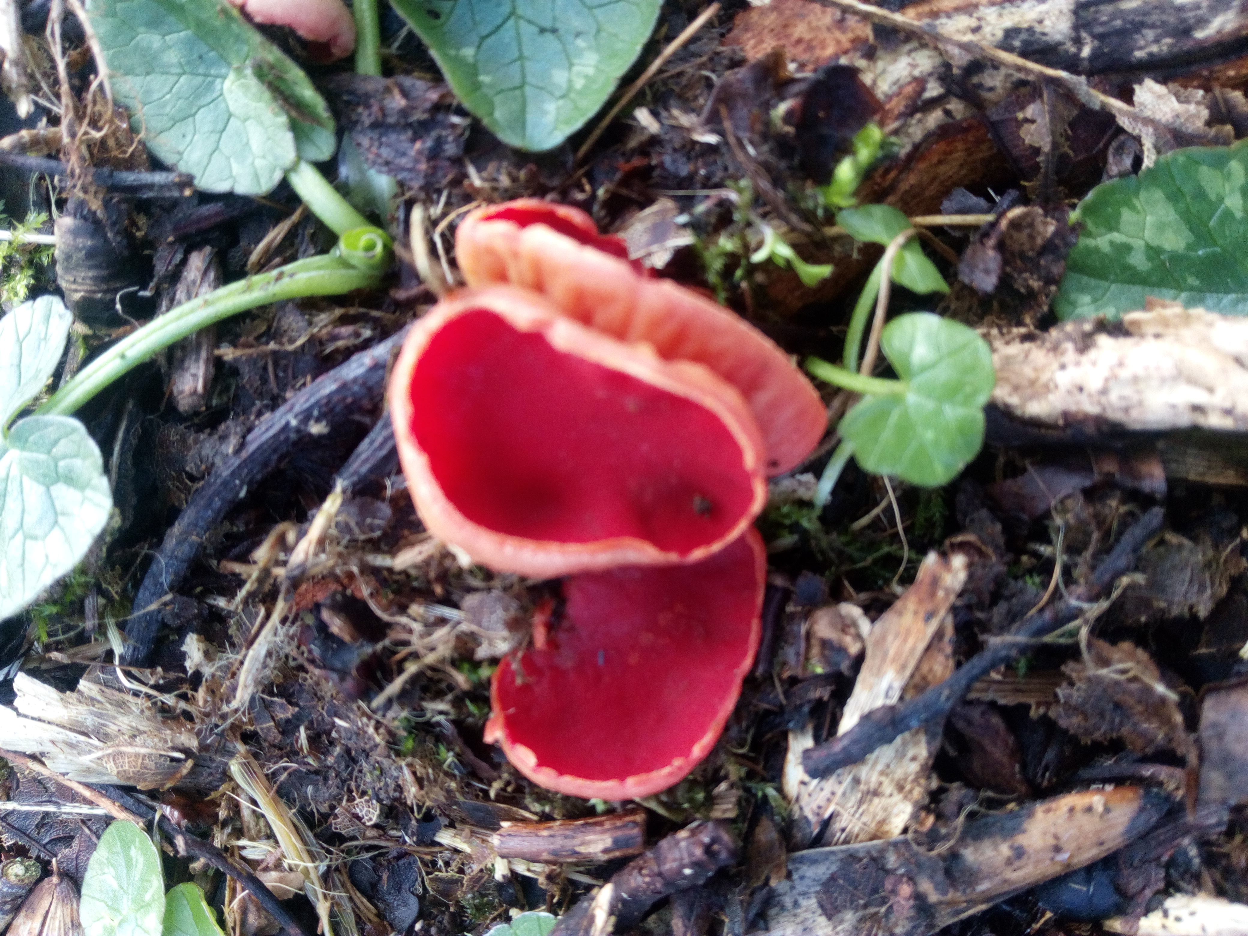 Yes, we noticed the red yoke in there. We thought that would grab your attention. It was photographed the same day as the daffodils. There’s some debate as to the exact name for this particular fungus. It could be The Scarlet Elfcup Fungus (sarcoscypha austriaca) – there seems to be a recurring mythological theme at this religious site. Or it might be the Ruby Elfcup (sarcoscypha coccinea). They are very alike. As a microscope is required to tell the difference, you are safe with just calling it an Elfcup. It prevents crazed and pedantic mycologists from attacking you with their soggy mushrooms.