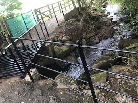 Work was also undertaken then, on the crossing point of the watercourse, referred to by this group as Ballyeglish Stream. A sturdy metal footbridge is there today, as a replacement for the railway sleepers that were said to have been used in bygone days to facilitate burials, and the erection of monuments, at that place. There are also light, metal safety railings on the bridge, as well as a fine kissing gate which provides access to the second part of the Public Right of Way.