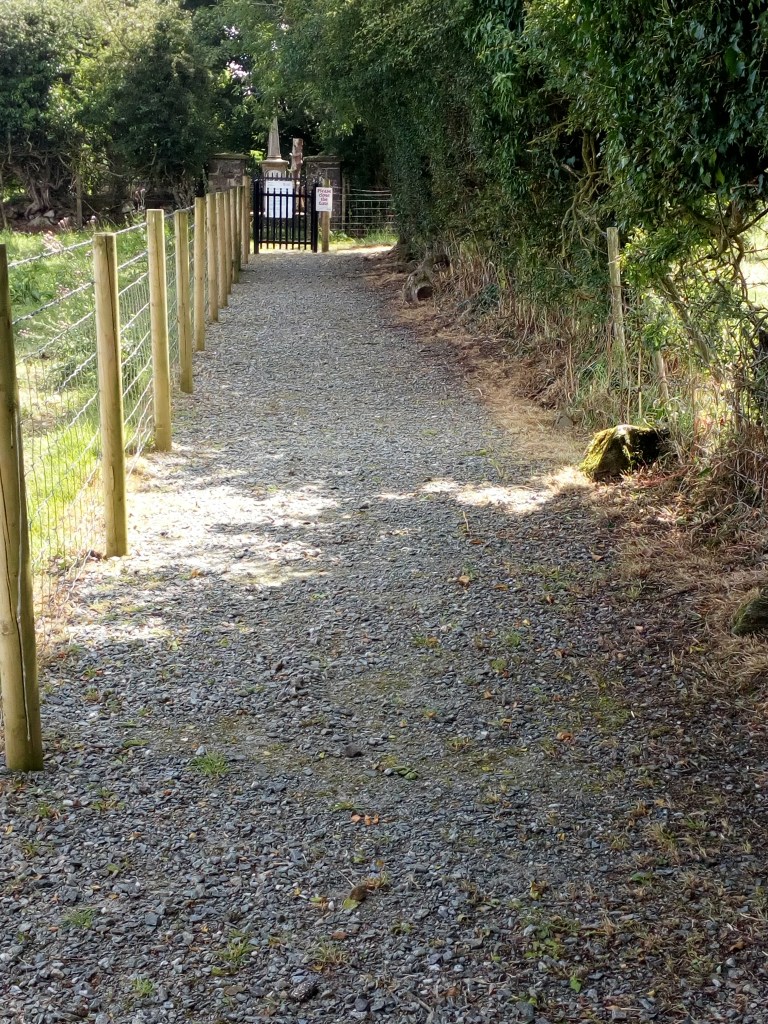 Here you can see the fenced pathway that leads directly from the kissing gate to the graveyard.