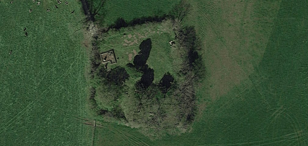 The next map dates to between 1846-1862. “Eglish Burial Ground” lies to the bottom and left of centre and has a blue cross to the top right of the marked graveyard. This earlier map is interesting as it clearly shows the access route from the road to the site, which has an elbow bend closer to the public thoroughfare, but which has been since removed.