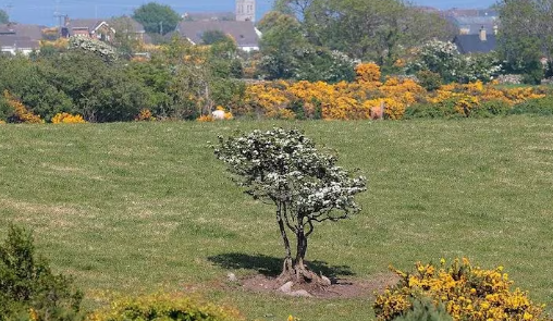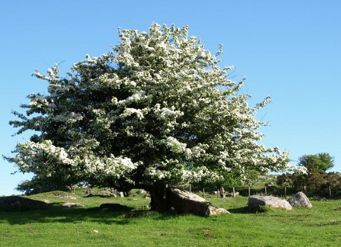 Hawthorn trees grow on old, untouched places like Faery Mounds. They also tend to thrive near to old wells, and are used as rag/clootie/prayer trees. The cut wood is described as having a smell not unlike dead meat, perhaps one reason why it was deemed bad luck to bring hawthorn wood into a home. It is understandable that the Aos Sí became associated with the hawthorn, given the connection of both to burial places and other spots of mystery, including copses of trees that might be growing on both larger and small mounds.